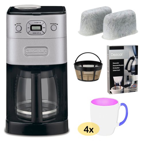 Cuisinart DGB-650BC Grind-and-Brew Thermal 10-Cup Automatic Coffeemaker, Brushed Metal + Replacement Water Filters 2 Pack + 4 pcs 16 oz. Stoneware Coffee Mug + Home Activated Coffee/ Espresso Descaler + Gold Tone Basket Coffee Filter