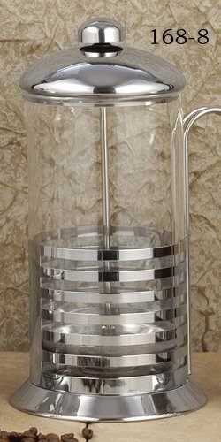 The EG&H 168-8 4.5-cup French press offers all the best of coffee making technology in a single, compact unit. Made with high grade stainless steel and durable glass, the press pot produces up to 36 ounces of your choice brewed beverage within minutes. Simply add a few scoops of your favorite coffee or tea, pour in hot water, and let the mixture infuse until you're ready to drink! Adjust To Your TastesMaking adjustments to the potency of your coffee is simple with the EG&H 168-8 4.5-cup French press! Fine-tune by modifying the quantity of coffee or by the total time you leave the coffee to steep. Stainless SteelThis all stainless steel press pot is made of high grade 18/10 stainless for functionality and style. The steel deliver fresher flavor than plastics and the outer stainless wraps around to secure the glass in a modern spiral design! Compact and LightweightThe EG&H 168-8 4.5-cup French press weighs only 2 pounds and measures a mere 8.5 inches long. You'll want to pack up this little coffee press pot and take it with you wherever you go! No Replacement PartsIf you hate the hassle of replacement parts or unpleasant cords, you'll appreciate the simplicity of the EG&H French press coffee maker. Operation requires no paper filters nor electricity, so you can enjoy a rich cup without the bells and whistles!