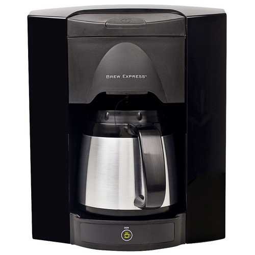 Making the perfect cup of coffee is now as simple as ever. With the award winning 4 cup Brew Express, simply pour in the coffee grounds, push the on/off button on the base, and let the automated system take care of the rest. The unit is attached to your home's water supply through a refrigerator or under-sink supply line, and is hard wired to your home's power supply. You never have to measure the correct amount of water again. The water is spread evenly over the coffee grounds to ensure a consistent brew every time and brews the coffee in half the time of conventional coffee makers. A built-in pause-n-brew infrared sensor prevents overflows and allows you to remove the carafe or mug at any time, without the mess of dripping coffee collecting on the base. The recessed design saves counter space for cooking and other appliances and includes a rough-in box for wall mounting. An improved carafe design increases heat retention, allowing you to set the carafe on a table or take it to a distant room without significant heat loss. Also included is a single cup brew basket for those that prefer to brew only one cup at a time.
